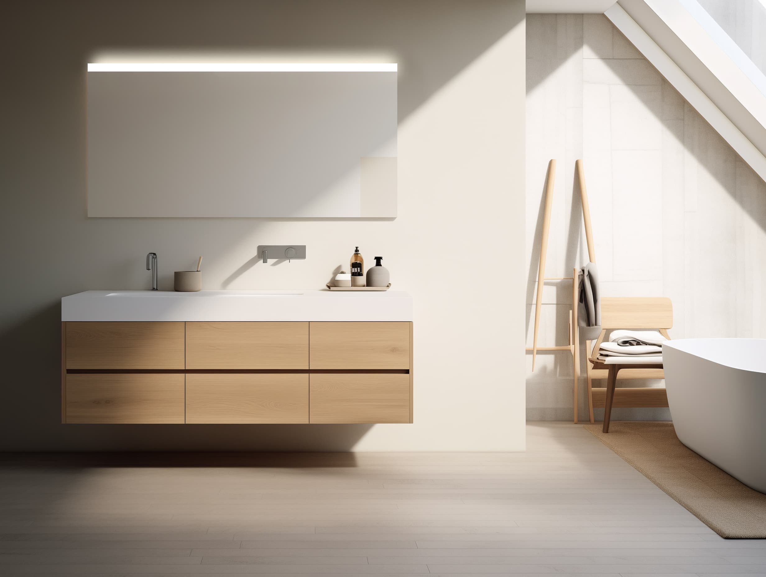 Der Spiegel kann mit einem Wandschalter eingeschaltet werden. Außer bei Wahl der Option: Touch oder IR-Sensor!