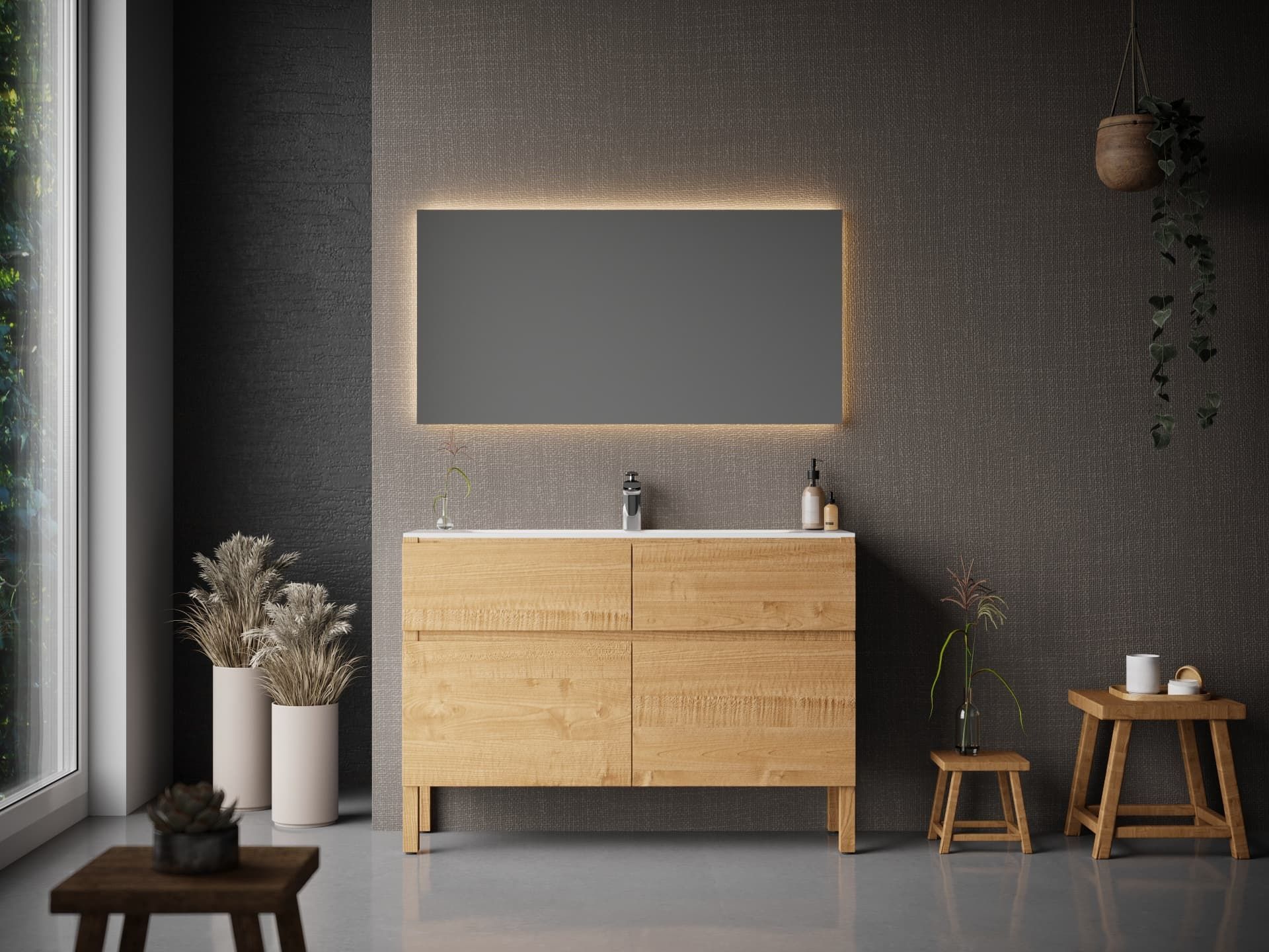 Direktes Licht kann als störend empfunden werden, daher setzen wir beim Badezimmerspiegel Tigres auf eine elegante Lösung. Die Hintergrundbeleuchtung taucht das Badezimmer in ein sanftes Licht und sorgt für eine gemütliche Atmosphäre. Schluss mit grellen Lichtstrahlen, die Sie morgens abrupt aus dem Schlaf reißen. Stattdessen bietet die sanfte Hintergrundbeleuchtung eine Augenweide für Ihr Zuhause. Gestalten Sie jetzt Ihren individuellen Spiegel!