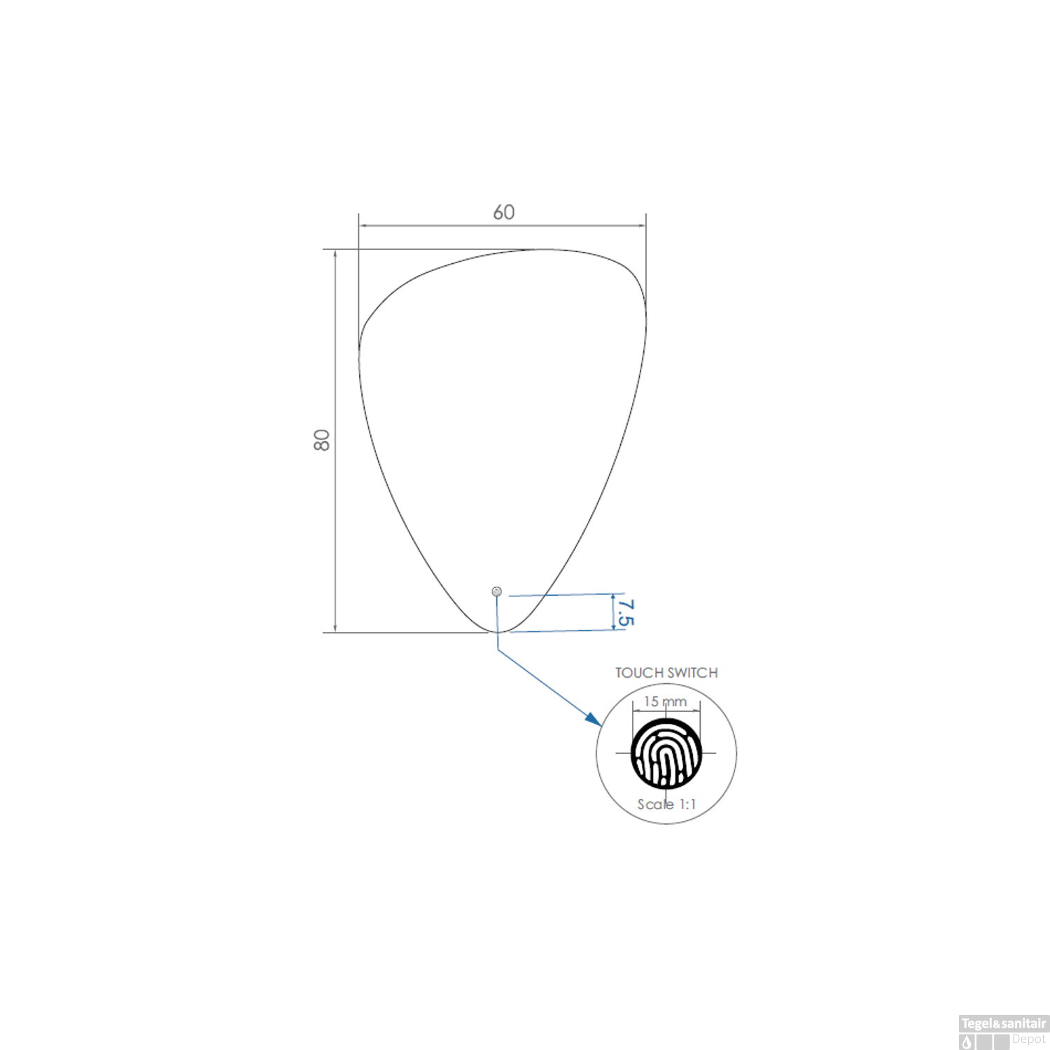 Die Beleuchtung ist in drei LED-Farben von 3000 bis 6500 Kelvin dimmbar. Auch der Spiegel ist in drei LED-Farben von 2000 bis 10000 Kelvin dimmbar. Die Farbtemperatur des Spiegels lässt sich in 3000 K, 4200 K und 6500 K einstellen. Für eine entspannende Atmosphäre im Badezimmer empfehlen wir 3000 K. Für bessere Sichtverhältnisse sind 4200 K oder 6500 K oft angenehmer. Diese Farben wirken etwas kühler und weißer als 3000 K. Der Spiegel ist 60 cm breit, 80 cm hoch und hat eine Glasstärke von 4 mm. Er verfügt außerdem über zwei Touch-Tasten zur einfachen Steuerung von Beleuchtung und Heizung. Im ausgeschalteten Zustand leuchtet die Touch-Taste blau.