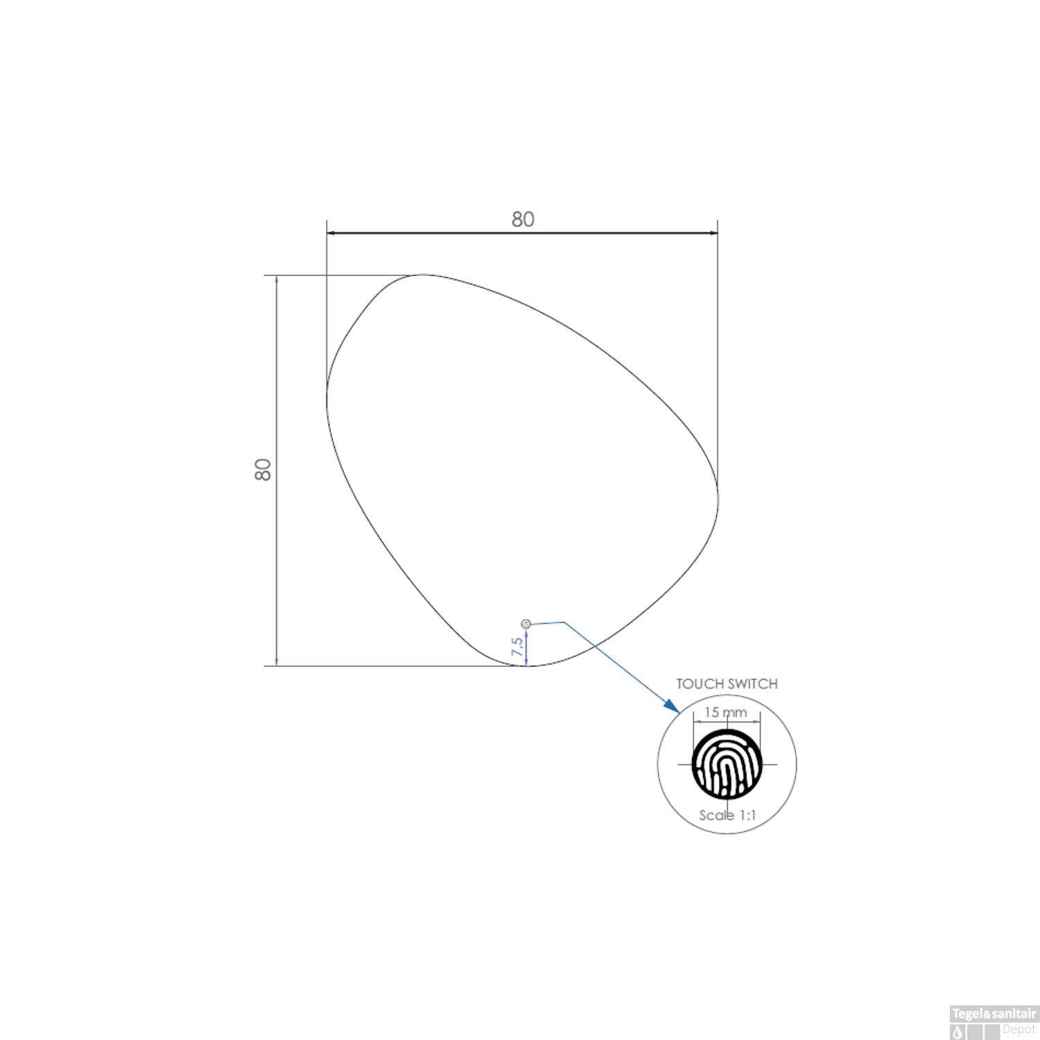 - Spiegelform: Oval (organisch)
