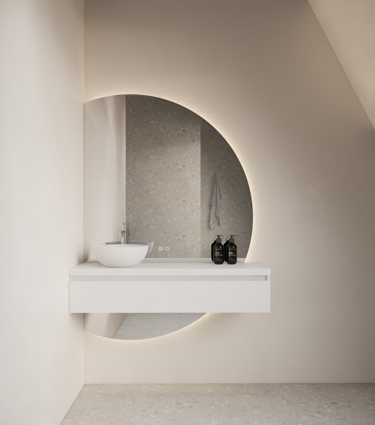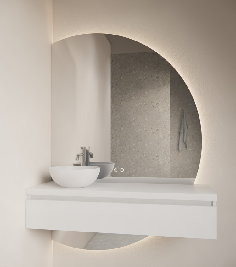 Calypso Halbmond-Badspiegel links mit LED & Heizung