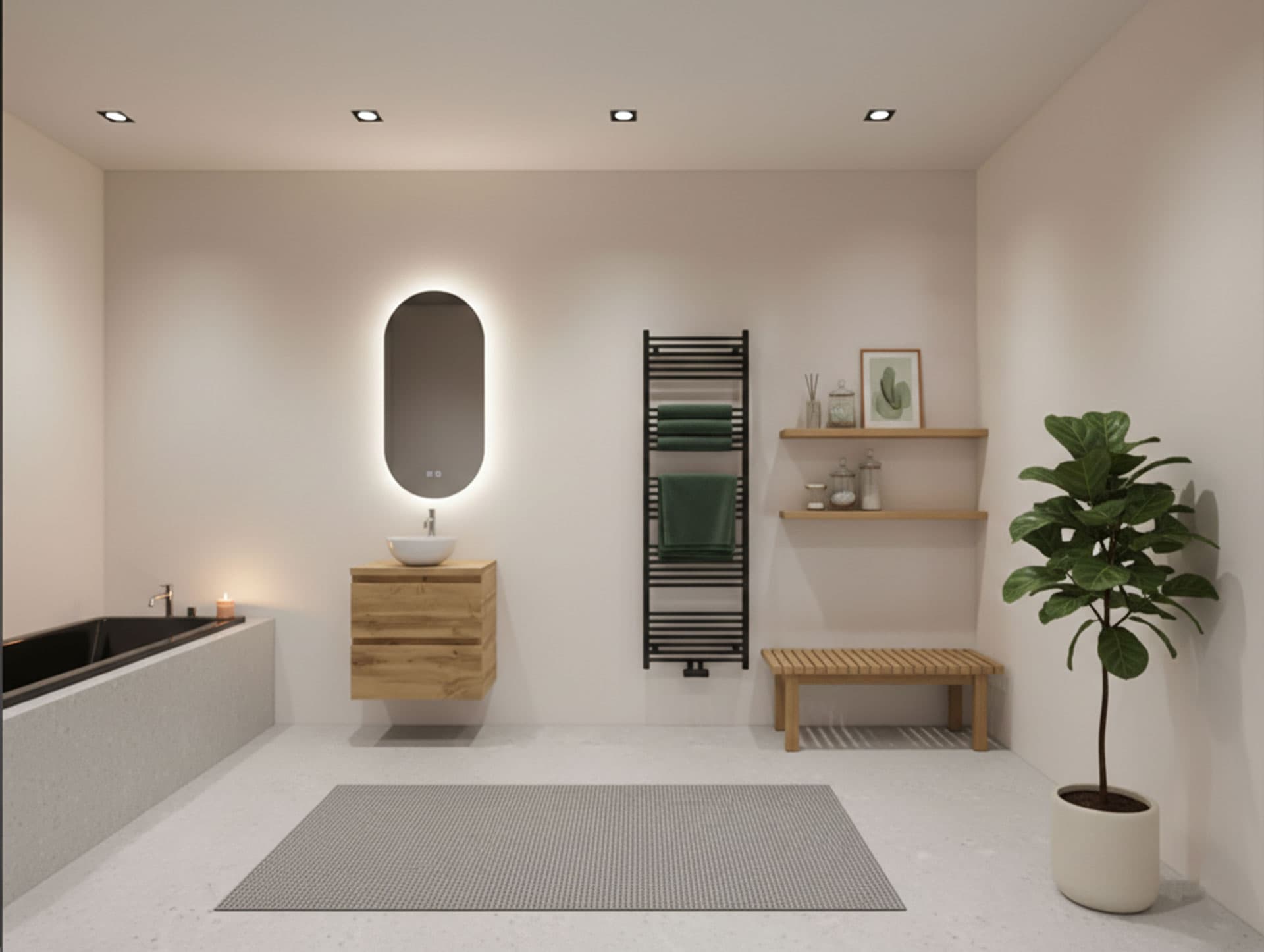 Ein ovaler Spiegel im Badezimmer ist absolut im Trend. Er verleiht dem Raum eine verspielte Note, und das Tolle daran ist: Zwei ovale Spiegel nebeneinander lassen sich leicht anbringen und sehen sehr modern aus. Der Orion-Spiegel von Gliss Design hat eine ovale Form. Er verfügt über eine Hintergrundbeleuchtung, die die Wand anstrahlt und so für eine stimmungsvolle Atmosphäre sorgt. Die Spiegelbeleuchtung wird über den Touch-Button an der Unterseite gesteuert. Sie ist in drei Farben erhältlich und dimmbar, sodass Sie das Licht ganz nach Ihren Wünschen anpassen können!