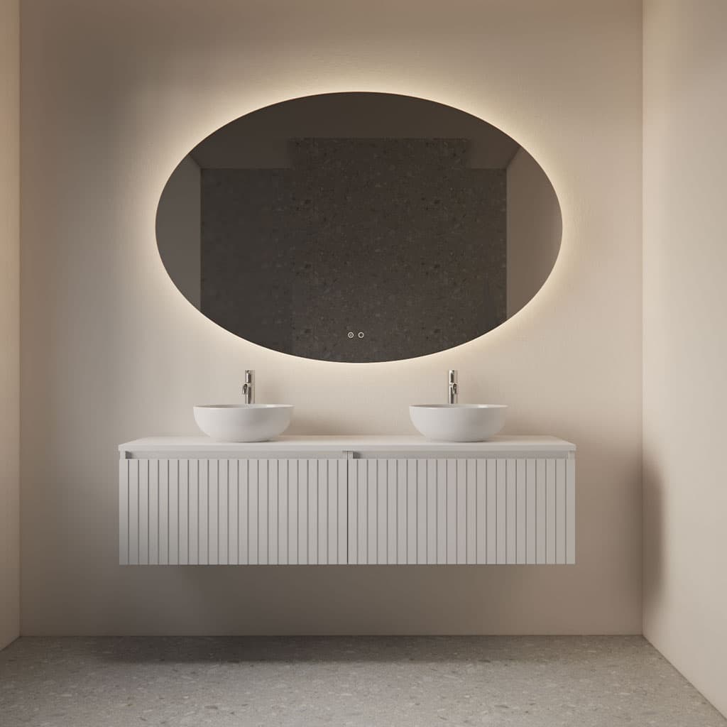 Gliss Ovaler Badezimmerspiegel mit LED-Beleuchtung und Spiegelheizung