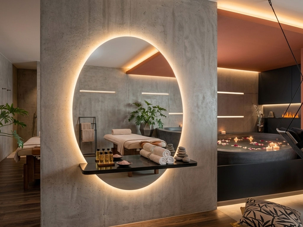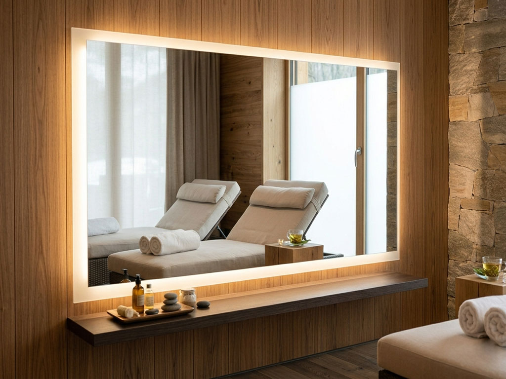 Spiegel-Lösungen für Wellnessbereiche nutzen 2026 adaptives Licht, das den Biorhythmus unterstützt. Warmweißes Licht zur Entspannung wechselt fließend zu aktivierenden Farbtönen.