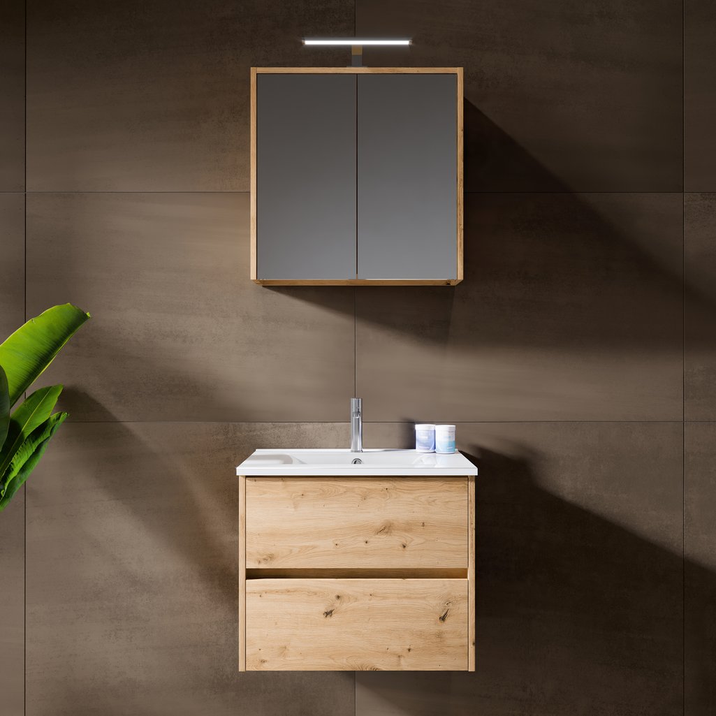 Porto Badmöbel-Set - Unterschrank mit 2 Schubladen, Waschtisch und Spiegelschrank
