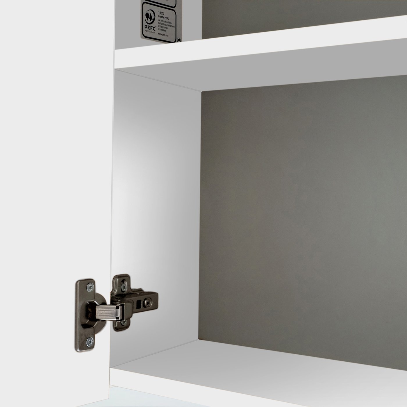 - Front: Kunststoffoberfläche, die besonders widerstandsfähig und pflegeleicht ist (Melamin)