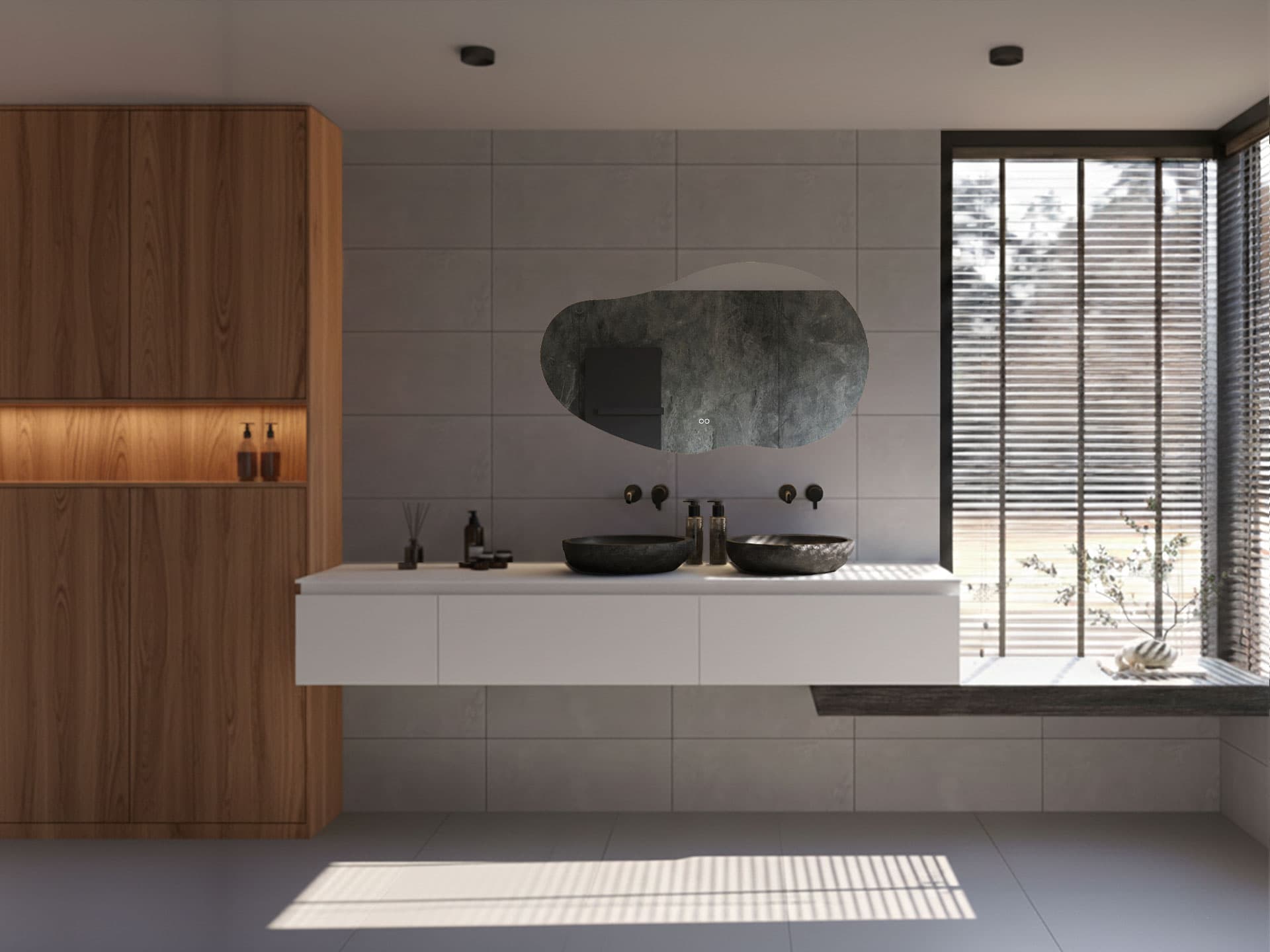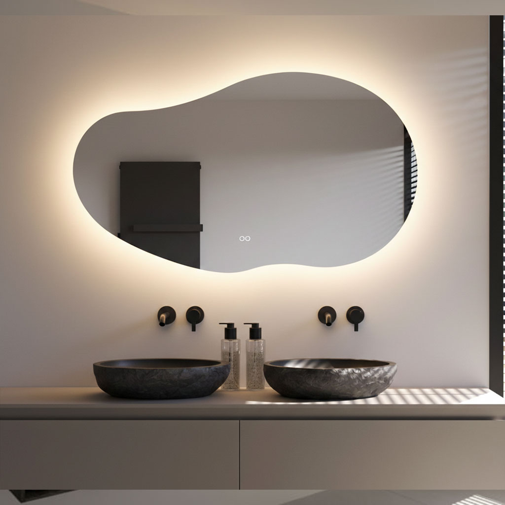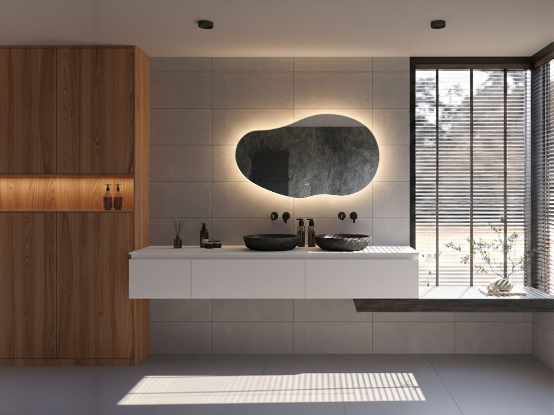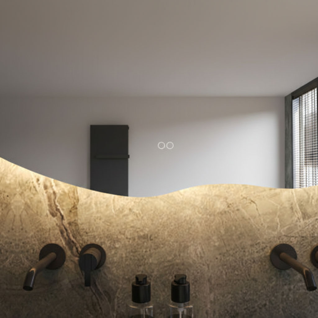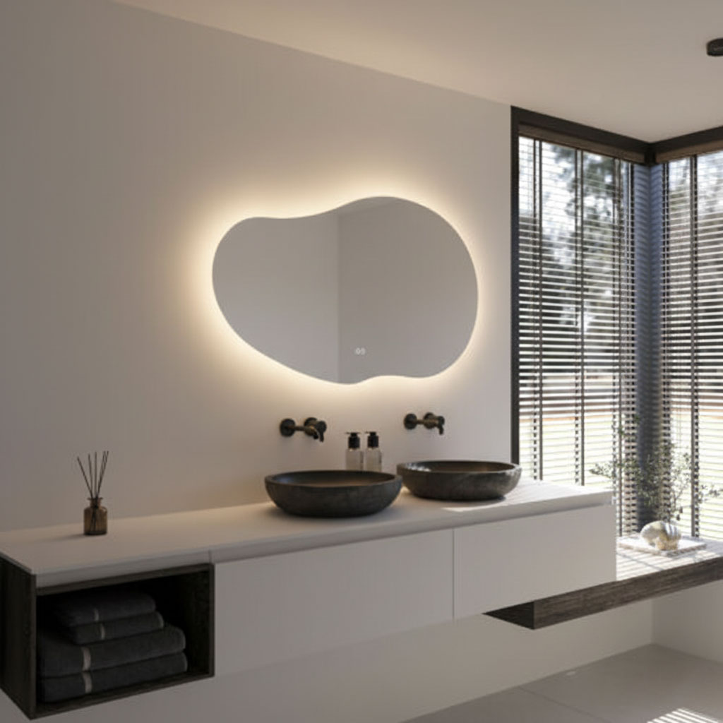 Diese organisch geformte Spiegel mit indirekter Beleuchtung ist der neueste Trend fürs Badezimmer! Das organische Design und die indirekte Beleuchtung schaffen eine warme und einladende Atmosphäre. Die stufenlos einstellbare Lichtfarbe zwischen 2700 K und 6400 K ermöglicht es Ihnen, die Beleuchtung ganz nach Ihren Wünschen anzupassen. Wählen Sie beispielsweise helles, weißes Licht für Ihre Morgenroutine und wärmeres Licht für ein entspannendes Bad am Abend.