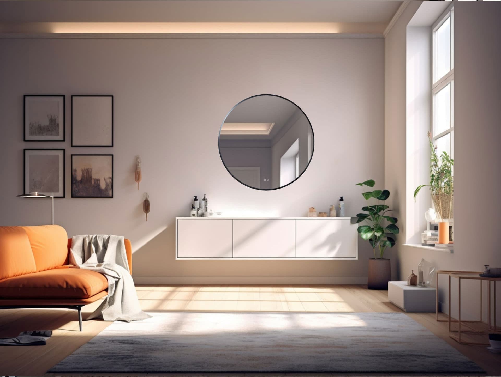 Für eine einfache Bedienung verfügt dieser runde Badezimmerspiegel auch über eine integrierte Spiegelheizung. Diese praktische Zusatzfunktion sorgt dafür, dass Ihr Spiegel nie wieder beschlägt!