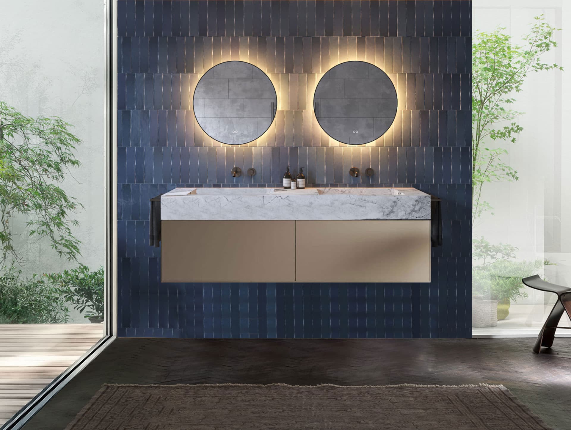 Stilvoller runder Badezimmerspiegel, ausgestattet mit einem wunderschön verarbeiteten, mattschwarzen Rahmen, Spiegelheizung und einstellbarer Lichtfarbe. Bei diesem großen runden Badezimmerspiegel strahlt die leistungsstarke LED-Beleuchtung hinter dem Spiegel attraktiv über die Wand. Darüber hinaus ist der Spiegel mit einer Spiegelheizung ausgestattet, die die Bildung von Kondenswasser nach beispielsweise dem Duschen verhindert. Mit dem praktischen Doppel-Touch-Schalter bestimmen Sie die richtige Lichtintensität und die gewünschte Lichtfarbe. So schaffen Sie im Handumdrehen die richtige Atmosphäre im Badezimmer! Hier technische Informationen dazu: