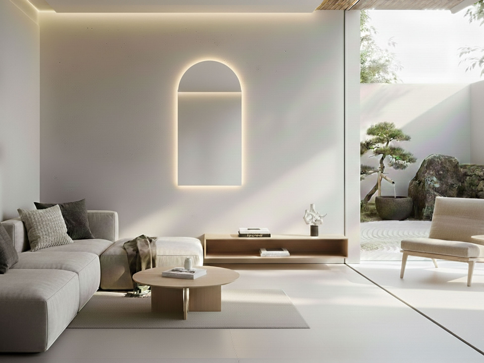 Maßgefertigter Bogenspiegel mit LED-Beleuchtung – Eleganz und Funktionalität nach Maß