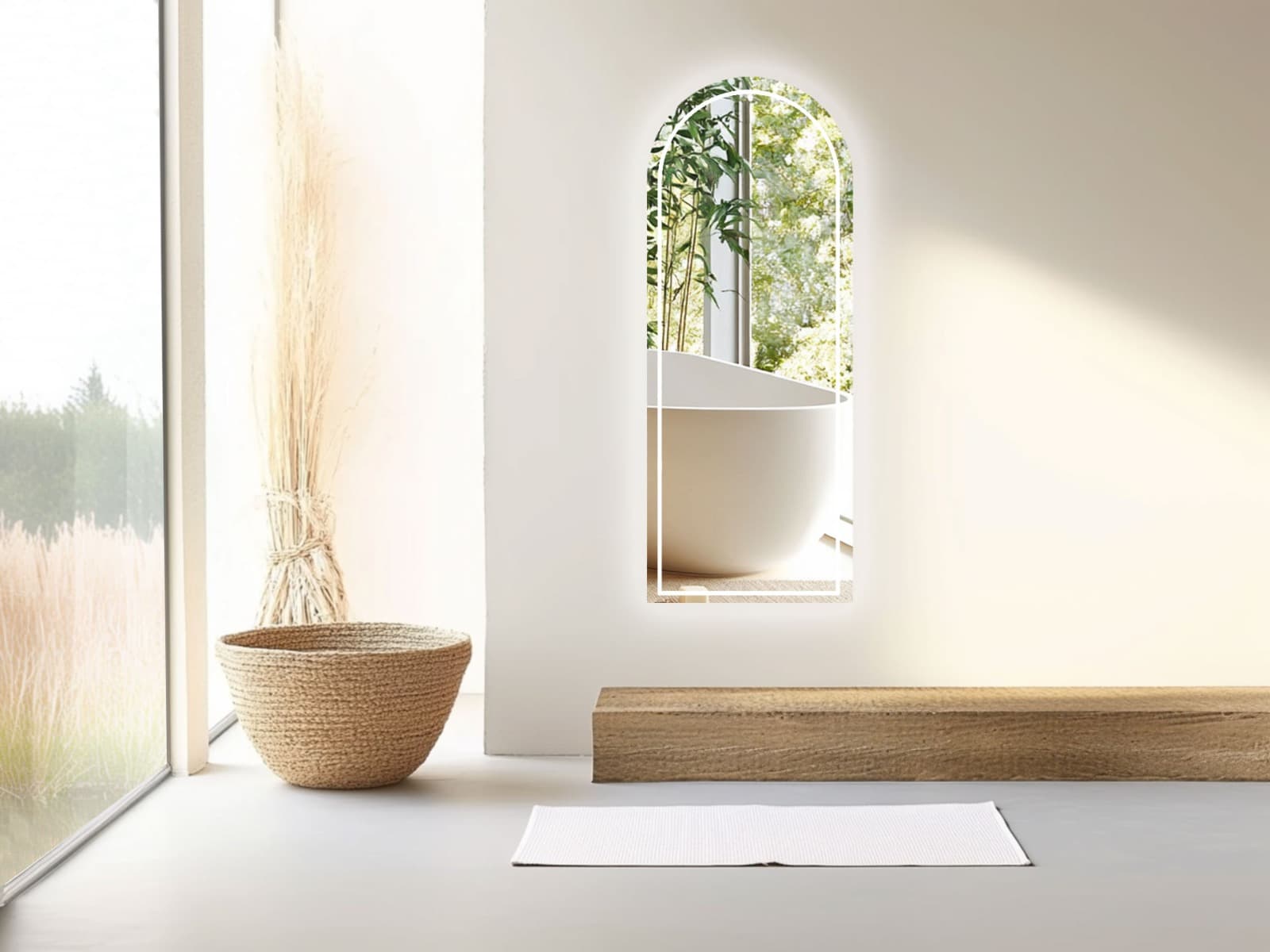 Mit seiner sanft geschwungenen Bogenform fügt sich der Aurora Bogenspiegel harmonisch in jedes Interieur ein. Ob im Badezimmer, Schlafzimmer oder Flur – er setzt stilvolle Akzente und bringt mehr Helligkeit und Tiefe in jeden Raum.