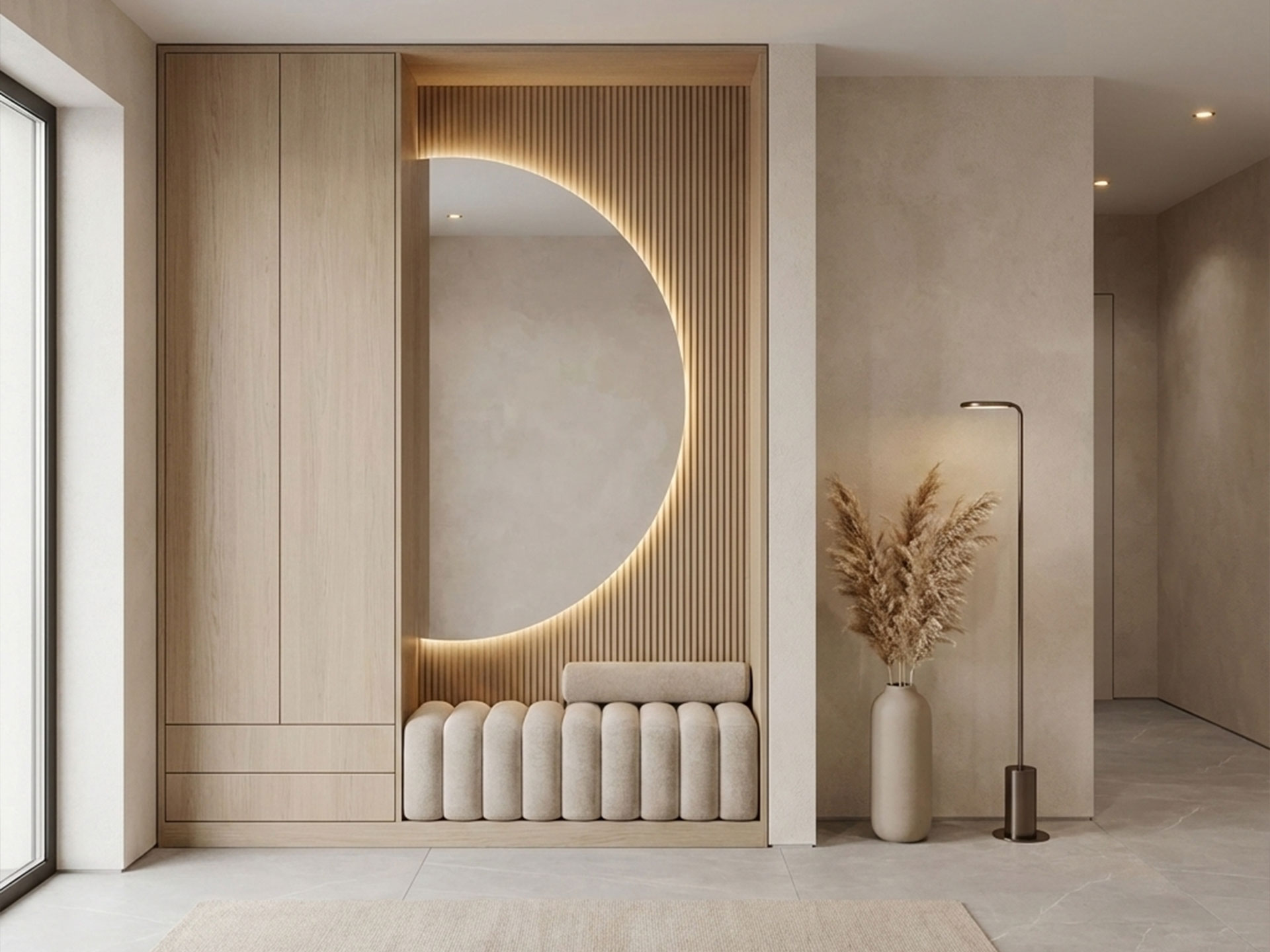 Unser maßgefertigter halbrunder Kristallspiegel ist die perfekte Ergänzung für eine elegante und anspruchsvolle Inneneinrichtung. Dieser handgefertigte Spiegel fängt auf wundersame Weise das natürliche Licht ein und reflektiert es sanft in jeden Raum Ihres Hauses, wodurch ein Gefühl von Weite und Eleganz entsteht.Dank seiner halbrunden Form und des hochwertigen Kristallmaterials ist dieser Spiegel nicht nur ein funktionaler Gegenstand, sondern auch ein dekoratives Kunstwerk, das Ihren Wohnraum bereichert. Die maßgeschneiderte Anfertigung gewährleistet, dass der Spiegel perfekt in Ihr bestehendes Dekor passt und dabei eine luxuriöse Atmosphäre schafft.