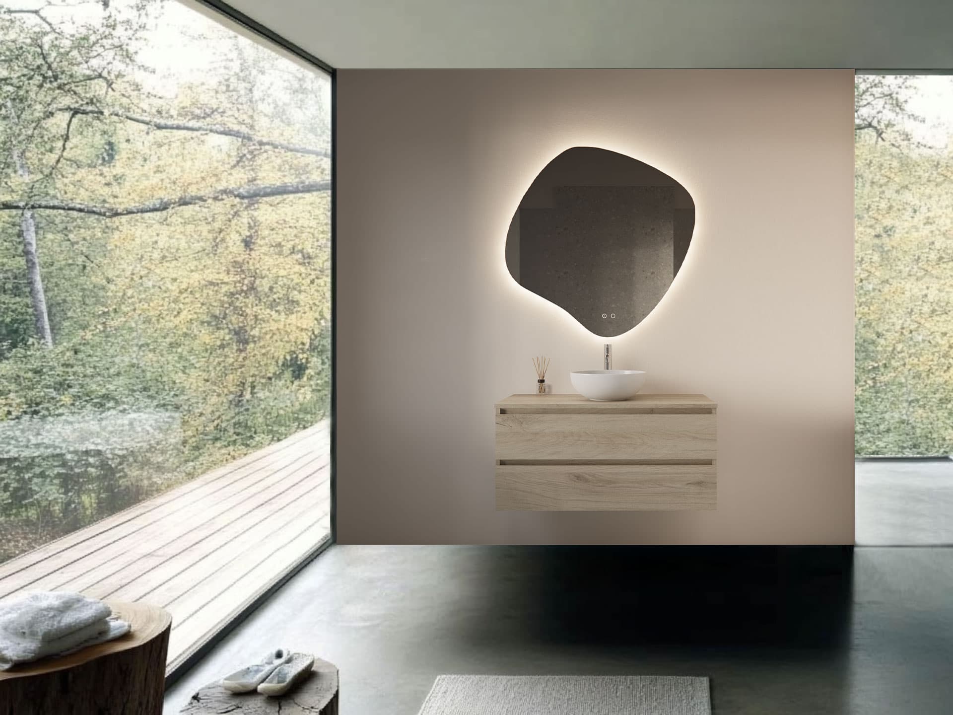 Organischer Spiegel Clio mit LED-Beleuchtung & Antibeschlag