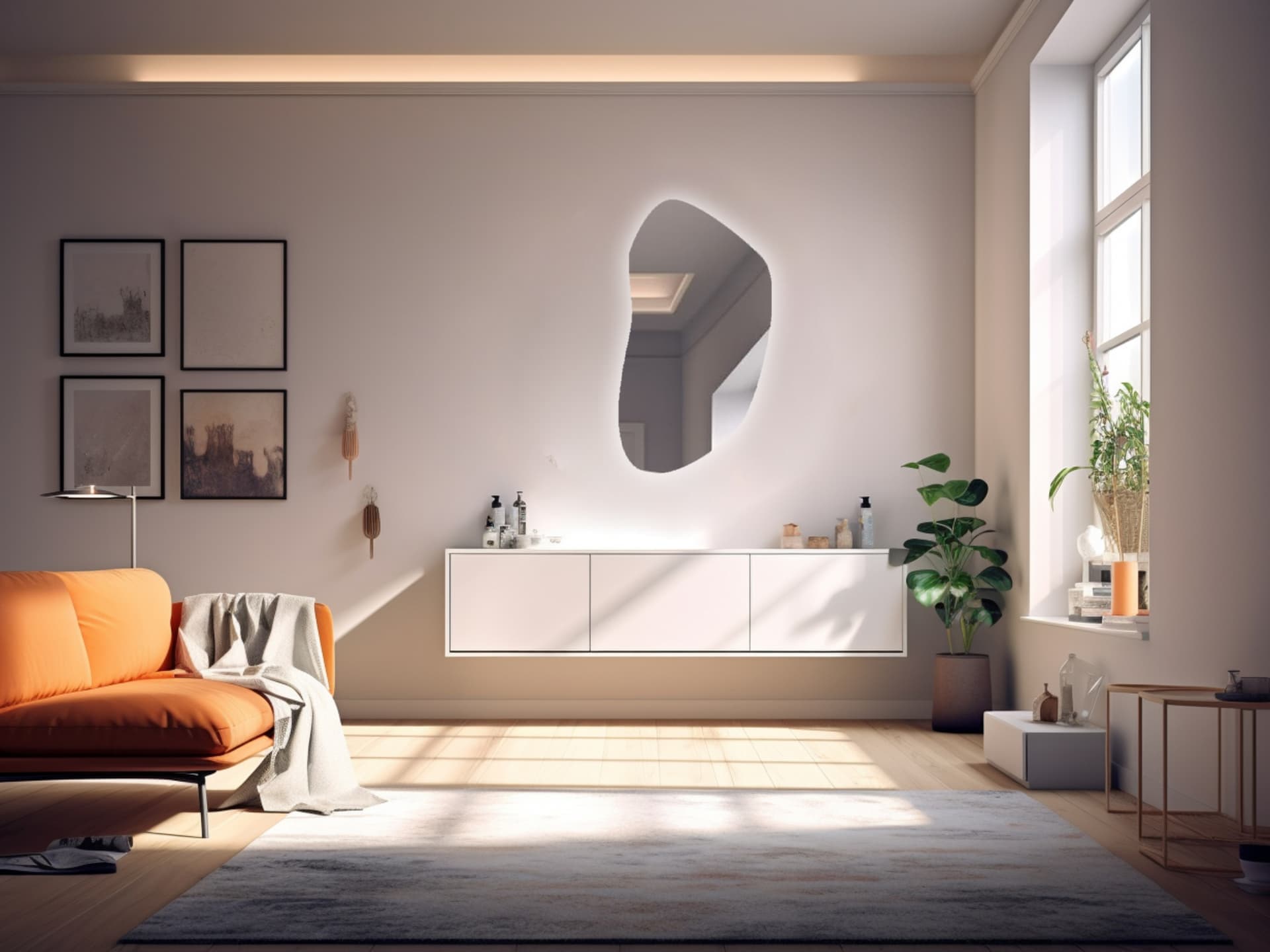 Der organische Spiegel ELSA ist ein frei geformter Wandspiegel nach Maß, der sich mit seiner weichen, asymmetrischen Kontur wie ein Designobjekt in moderne Wohn- und Badezimmerkonzepte einfügt.
